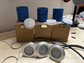 Vendo 2 faretti Targetti mod 1E1014 led rosso + 1 faretto Targetti 1E1028 led blu, carrabili, dimensioni d 60, h 75, comprese le 3 scatole da incasso al costo complessivo di 180,00 euro.