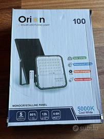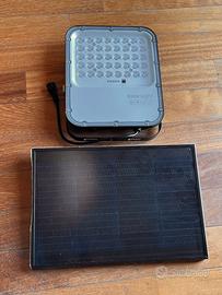 Faretto da esterno con pannello solare. Potenza 100 W. Prodotto ancora imballato.