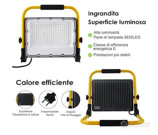 Faretti da cantiere portatile pieghevole 150 led. Luce bianca 6500k,15000 lumen. Nuovo ancora in confezione originale mai usato
