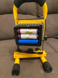 Vendo faretto a LED professionale da lavoro, in ottime condizioni e perfettamente funzionante. Ideale per cantiere, officina, campeggio o emergenze in auto. Caratteristiche principali: Alimentazione: Funziona con 3 batterie ricaricabili 18650 da 3,7V (incluse) 3 Modalità di illuminazione: Luce bianca alta intensità. Luce bianca bassa intensità (risparmio energetico). Modalità emergenza con lampeggio Rosso e Blu (tipo segnalazione). Regolazione totale: Il faretto ruota di 360 gradi sulla base e ha l'inclinazione regolabile. Entrambe le posizioni si possono bloccare saldamente tramite le apposite viti di registro manuali. Stato: Usato pochissimo, LED potentissimi e struttura robusta. Ottimo per chi cerca una fonte di luce potente, stabile e direzionabile con precisione.