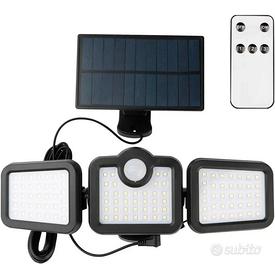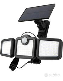Faretto LED Solare 3 Pannelli Orientabili con Sensore di Movimento – Esterno Notturno