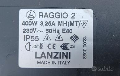 Faro alogeno potenza 400 W 230 V completo di presa industriale e cavo lungo 3 m.