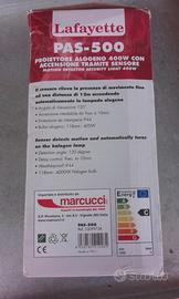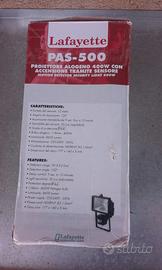 Vendesi faro alogeno nuovo Modello Lafayette Pas-500 per lampada da 400 watt , con accensione tramite sensore di movimento , ancora imballato nella sua confezione originale .