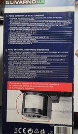 Faro esterno Livarno Lux a basso consumo con sensore di movimento integrato, ideale per illuminare ingresso, giardino, garage o cortile.