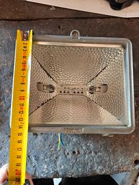 vendesi faro da esterno, con resistenza IP65 alle intemperie...tenuto all'esterno, sostituito per passaggio ad un modello di colore nero per motivi di estetica. ancora totalmente funzionante. veniva utilizzato per illuminare una corte da un'altezza di 7 metri. le dimensioni si possono vedere nelle varie immagini.
