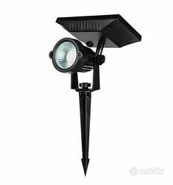 FARO FARETTO SOLARE LAMPADA LED DA GIARDINO 10W CON PICCHETTO E SENSORE CREPUSCOLARE