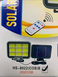 Faretto solare completo di pannello fotovoltaico e telecomando per il controllo.