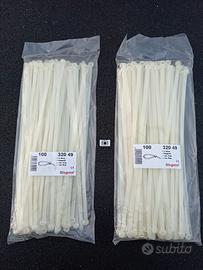 Fascette in plastica tipo da elettricista, misura 7,6 x 360 mm, con relativo pezzetto da avvitare se si vuole fissare qualcosa su una parete o a muro etc, in totale 12 confezioni da 100 fascette, vendo 4 euro a busta. Spedisco solo se ne prendete almeno 6 confezioni al prezzo di 30 euro (spedizione compresa, 24 + 6 = 30).