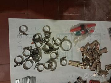 Lotto composto da fascette stringitubo di varie dimensioni e di vario tipo (tra queste diverse decine con rivestimento in gomma di vari colori), flessibili, guarnizioni e altra minuteria di ottima qualità: tutti gli oggetti visibili nelle foto pubblicate. SOLO CONSEGNA A MANO
