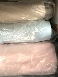 feltro sottile, disponibile rosa, azzurro, panna, altezza 2 mt. venduto a metraggio a 3€ al metro
