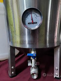 Fermentatore per homebrewer, completo di tutti gli accessori. Serpentina ricircolo acqua, strumento temperatura sotto controllo, secondo fermentatore in plastica per travasi,accessori vari e una busta di sanificatori. possibilità di acquistare bottiglie.