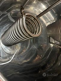 Fermentatori non coibentati, muniti di valvole a sfera per scarico totale e parziale con attacchi camlock, sfera di lavaggio, pozzetto portasonda e sistema ad immersione per il controllo di temperatura tramite piastra o serpentina ad immersione. Il modello fiorettato ha la piastra mentre l’altro una serpentina sempre in inox, che permettono un preciso controllo di temperatura o un eventuale coldcrash se collegati ad un chiller. Sempre lavati e sanificati ad ogni utilizzo. Prezzo 700€ cadauno. Vendo per scarso utilizzo, non svendo, non scambio. Preferito ritiro di persona o eventualmente spedizione a carico ed organizzazione dell’acquirente con l’aggiunta delle spese per l’eventuale l’imballaggio. Pagamento tramite bonifico. Il tutto è visionabile a Peveragno - Cuneo, in qualunque momento. Se avete bisogno di altre foto o informazioni non esitate a contattarmi.