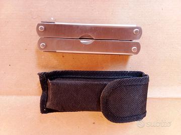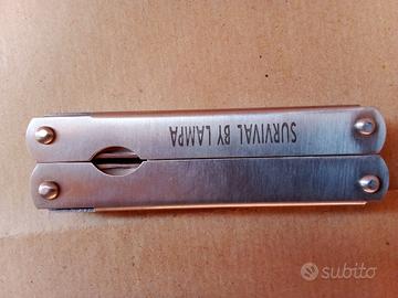 Attrezzo multiuso da outdoor in acciaio inossidabile della linea "Survival by Lampa" - compatto e pieghevole che combina molteplici funzioni in un unico utensile: pinze con tagliafili, un coltello, un seghetto per legno, un apribottiglie e vari cacciaviti – corredato di custodia – dimensioni ripiegato 10X3X2 CM peso 150 G – nuovo, mai usato