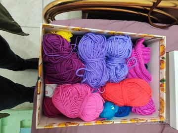 attrezzatura completa per lavorare la lana , ferri di diverse dimensioni e uncinetti, gomitoli di lana interi e non, vendo per inutilizzo.