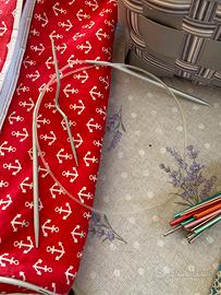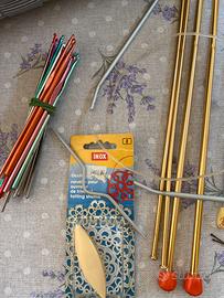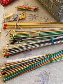 Vendo una notevele serie di ferri per maglia. Ferro per trecce e ferro circolare per lavorare a maglia in Rotondo , nonche serie di uncinetti e una navetta per chiacchierino . In tegalo borsa per portare appresso gli attrezzi da lavoro , e cestino con vari gomitoli fi lana e cotone , tutto euro 50 .