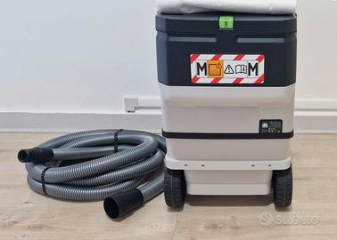 Aspiratore per polvere e liquidi Festool CTM Midi a Battteria Nuovo , Classe filtrazione polveri M, con funzione Bluetooth per avviamento da utensile o connessione ad App Festool, completo di due batterie da 5,2 Ah usate (poco), perfettamente funzionanti ricaricano al 100%, un caricabatterie veloce TCL 6 usato, il tubo Nuovo originale Festool (grigio) e un sacco di raccolta polveri nuovo. Quello che vedete in foto è quello che ricevere (in caso di spedizione) Prezzo non trattabile