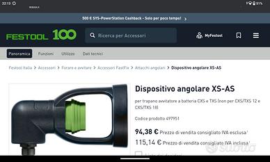 vendo festool cxs csx avvitatore 10,8 completo di caricabatteria caricabatterie,2 batterie 2,6 ah,mandrino,centrotech,portainserti x centrotech, in perfette condizioni ...il miglior avvitatore x mobilieri perché piccolo,compatto, potente e soprattutto leggero rispetto ai nuovi avvitatori festool....introvabile.... inoltre x chi lo volesse posso aggiungere angolare usato ,la sua foto e solo x fare vedere l'articolo quanto vale...