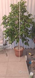 ficus benjamin in ottima salute pluri decennale. altezza 2.05 mt larghezza 1.20/ 1.30 mt . potato lo scorso anno quindi quest'anno si è rinfoltito parecchio. fogliame lucido e di un bel verde scuro. vendo a chi se ne può prendere cura vista l'età e lo stato della pianta a prezzo di 130 euro.