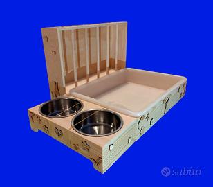 Trasforma l’angolo del tuo coniglietto in uno spazio più ordinato, pulito e antispreco con questa fieniera 3 in 1 in legno massello, realizzata interamente a mano.