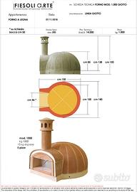 Forno a legna modello Giotto 1000, misura interna 100 cm per 5 pizze, il modello 1000 Giotto è pronto all'uso (già coibentato) adatto per tutti i giardini , non teme le temperature rigide