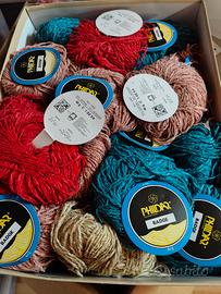 Vendo questo piccolo stock di gomitoli e matasse sfumate e multicolore in cotone, lino e altre fibre, adatti a confezionare lavori con ferri e uncinetto, borse e altri accessori fatti a mano. Sono più di 50 pezzi.