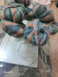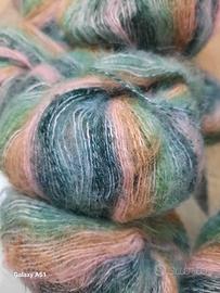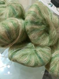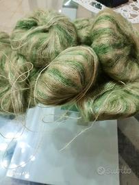 misto mohair lana e acrilico . belisimo filato morbidissimo da lavorare con ferro 2 , 2.5 250 grammi vede più scuro e 250 grammi verde erba in totale 20 gomitoli di 25 grammi l'uno