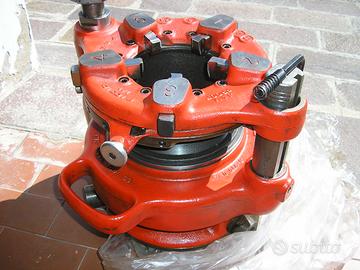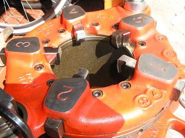 Splendida Filiera a demoltiplicazione RIDGID 141 Per filettare diametri : 2'1/2 - 3' - 3'1/2 - 4' .........BSPT con un set di 5 pettini ad alta velocità ; Completa di albero di trasmissione e brugola serraggio mandrino Caratteristiche : La frizione a ganasce ne impedisce l'inceppamento. Semplice regolazione per filettature a cono o diritte. Il dispositivo di blocco a camme stringe il pezzo da lavorare istantaneamente. Ingranaggi completamente chiusi. Peso : 45.8 Kg. Perfette condizioni pari al NUOVO, Usata pochissimo Compatibile con Filiera elettrica RIDGID 300