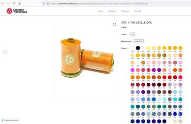 Rocchetti di filo Cucirini Tre Stelle Oro da 915 metri (titolo 50) adatto per cucire a mano o a macchina in cotone 100%, disponibile nei colori bianco (0), nero (1), rosso (9, 10, 313), marrone (31, 217, 27, 28), beige (?), verde (39) e grigio (16, 18) .