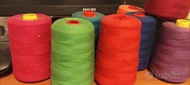 Vendo per inutilizzo filo in poliestere per macchine da cutito e fai da te. 10000 yard I colori gialli sono nuovi, ancora imballati. Gli altri sono aperti ma ne manca molto poco. Totale 15 pezzi