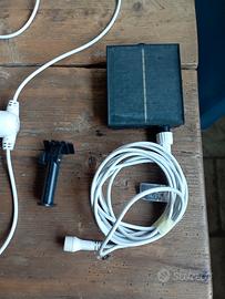 2 fili di lampadine da esterno 5+5 mt con pannello fotovoltaico per ricarica solare e batteria, durata di 5-6 ore con ricarica completa. 1 telecomando che controlla entrambi i fili, supporto per il pannello fotovoltaico. 9 colori+ bianco e timer di spegnimento