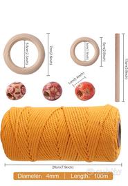 Vendo due rotoli di splendido filo per macramé, color giallo ocra, con kit per creare simpatici appendi piante. Nuovi, mai aperti, con imballo originale. Vendo causa inutilizzo.