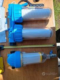 Nuovo mai usato, vendo per errato acquisto gruppo filtro acqua 3/4" a tre stadi, completo di accessori di montaggio e attrezzo apposito per svitare l bicchiere, primo stadio autopulente HYDRA DS MP 3/4 1 RSH 50 mcr Filter, comprensivi di cartucce nuove. Spese trasporto a carico dell'acquirente