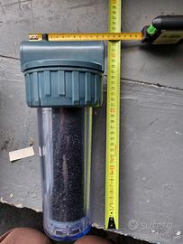 attacco femmina da 1 pollice , cartuccia intercambiabile.ai carboni attivi .altezza 31 cm larghezza 13 cm, adatto per acqua 💧 potabile , tel 3392527162