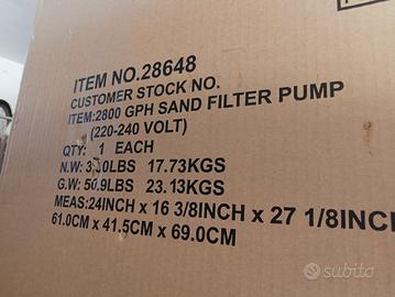 vendo per inutilizzo pompa filtro a sabbia per piscina come da foto. scatola mai aperta.
