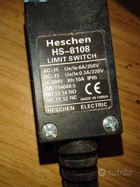 Vendo finecorsa industriale a leva con rotella modello Heschen HS-8108. Il componente è nuovo, mai utilizzato e ancora in condizioni perfette. Si tratta di un dispositivo con grado di protezione IP65 e contatti normalmente aperti e chiusi (NO/NC), ideale per applicazioni di automazione o controllo in ambito elettrico e meccanico.