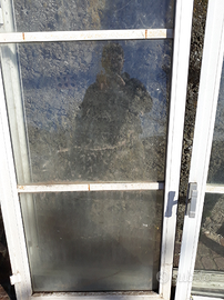 Grande finestra in alluminio con telaio e maniglia. Vetri doppi e guarnizioni. Luce interna 150 (due ante da 75 cm)x240 Telaio 5 cm x lato. Possibilità di trasporto con costi a carico dell'acquirente