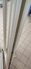 finestra in legno laccato bianco. apertura a due ante, una a ribalta. vetro camera stile Inglesina maniglia dorata dotata di foro per allarme. completa fi fascette interne e esterne. Il telaio misura 1430mm x965 spessore 55 mm. Come da foto presenta rottura del traverso e sull'anta. Tutto riparabile
