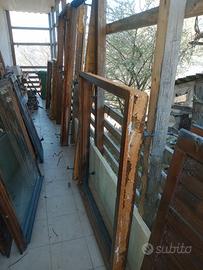 Serramenti infissi legno disponibili 3 finestre anta singola con apertura a ribalta doppio vetro misura 1,10x 1,29 altezza complete con persiane scuri apribili 100 euro l'una
