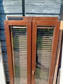 Finestre in legno color noce scuro con doppi vetri con anche gelosie persiane il tutto completo di telaio Misure: telaio 93 x156,5 x 13,7 Finestre 46 x 153 x Il tutto in ottimo stato come da foto. Domandate pure
