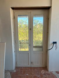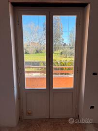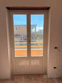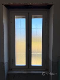 Colore bianco misure:LxH 2 pz 83x137 vetro satinato 2 pz 124 x 137 vetro trasparente 3 pz 124x 227 porta finestra Smonto mie spese. Non sono nuove ma fanno una bella figura. Profolo perimetrale a Z su 3 lati 100€ al pezzo sconto per acquisto in blicco