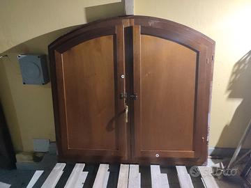 Vendesi finestre e porte finestre in legno, colore noce scuro, completo di telaio, contro cassa e scurini a battente. Legno e vetri in buone condizioni generali, con una carteggiata prenderebbero nuovamente lo splendore iniziale. Nel dettaglio le misure sono: Finestra doppia anta: 140*140 (n°2) Finestra anta singola: 90*140 (vetro satinato) Portafinestra doppia anta: 120*240 Portafinestra doppia anta: 110*240 Portafinestra doppia anta: 100*240 Portafinestra doppia anta: 140*220 Prezzo 150€ finestra, 200€ portafinestra.