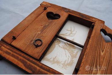 Deliziosa finestrella decorativa realizzata a mano, perfetta per aggiungere un tocco rustico e romantico alla tua casa. Gli scuri presentano un'intagliatura a forma di cuore. - Design artigianale unico. - Dettaglio a forma di cuore sugli scuri. Dimensioni 50x45x6cm