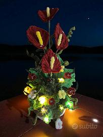 ideale per regalo in qualsiasi occasione. dona un tocco di eleganza e colore ad ogni superficie che desiderate postarlo.esiste in colore diversi a vostro e tipi di fiore artificiale secondo le vostre richieste. una volta acquistato questo prodotto ne posso fare un altro ma non sarà mai uguale perché ogni composizione è unica nel suo stile.