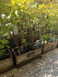 vendo n.12 fioriere in legno trattato con all'interno due siepi (per ogni vaso) varietà fotigna red.