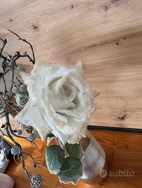 Fiori decorativi invernali, rose bianche con glitter, effetto ghiacciato, cespugli con palline argentate, in buone condizioni, SENZA VASO #fioridecorativi #dekorosen #winterrose #winterdeko #decorazioneinvernale #inverno #fioriartificiali