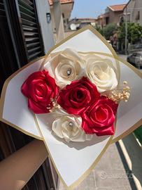 6 rose (rosso e vbianco) fatti a mano