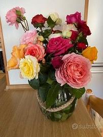 Ecco la nostra offerta: 6 mazzetti da 10 pz cadauno di gerani giapponesi multicolor stelo 50 cm, recisi ; 30 rose multicolor stelo 30 cm, recise
