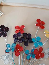 quadro con fiori in filo di ferro fatto a mano