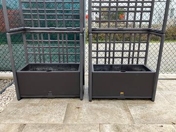 Ciao Vendesi 2 fioriere con griglia della ditta nardi leader nel settore attrezzature da esterno tenute bene Misure del grigliato: h 210 lunghezza 70 larghezza 35 Misure esterne fioriera: h 26 lunghezza 66 larghezza 32 Non vendo singolarmente