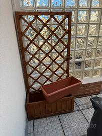 Vendo fioriera con grigliato in legno, buona condizione, vendo per inutilizzo. Incluso nel prezzo il suo vaso dedicato. Misure: - altezza 115cm - larghezza 74cm - profondità 30cm Solo ritiro a mano. Per qualsiasi info sono a disposizione
